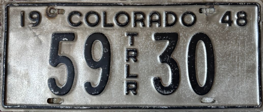 In 1932, Colorado began using 1- and 2-digit prefixes to denote county of issuance on its license plates. They were numbered 1-63 (for 63 counties), and they were ordered based on population in the 1930 census. 59 used to denote Jackson County plates because it had the fourth-lowest population in the state at the time. Click here for a full list of Colorado's county codes and allotments.